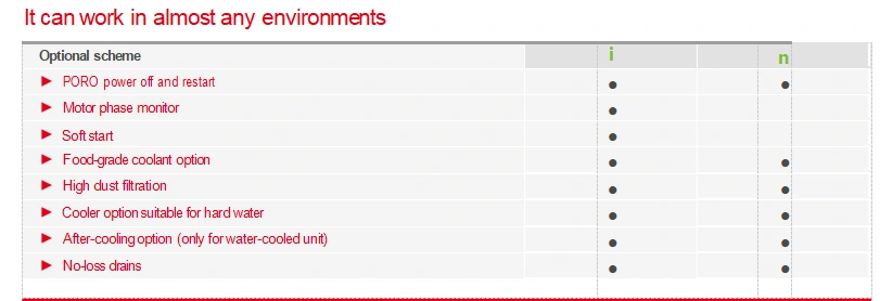 Våra kompressorer erbjuder livsmedelsklassade kylvätskor, hög dammfiltrering och hårdvattenkylare och andra alternativ anpassade för tuffa miljöer, som kan möta dina behov av flera applikationer.