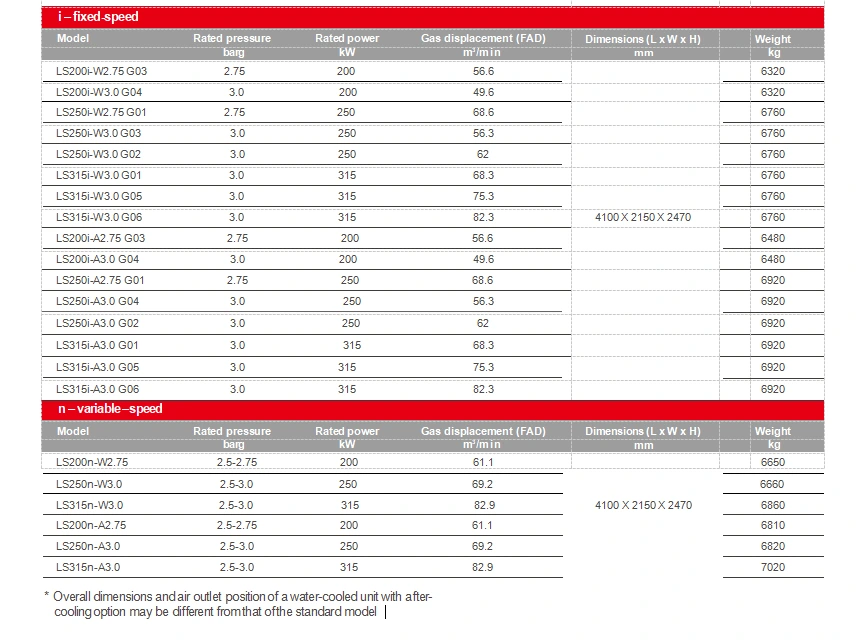 LS-serien lågtrycks oljefri skruvluftkompressor 200-315kW
